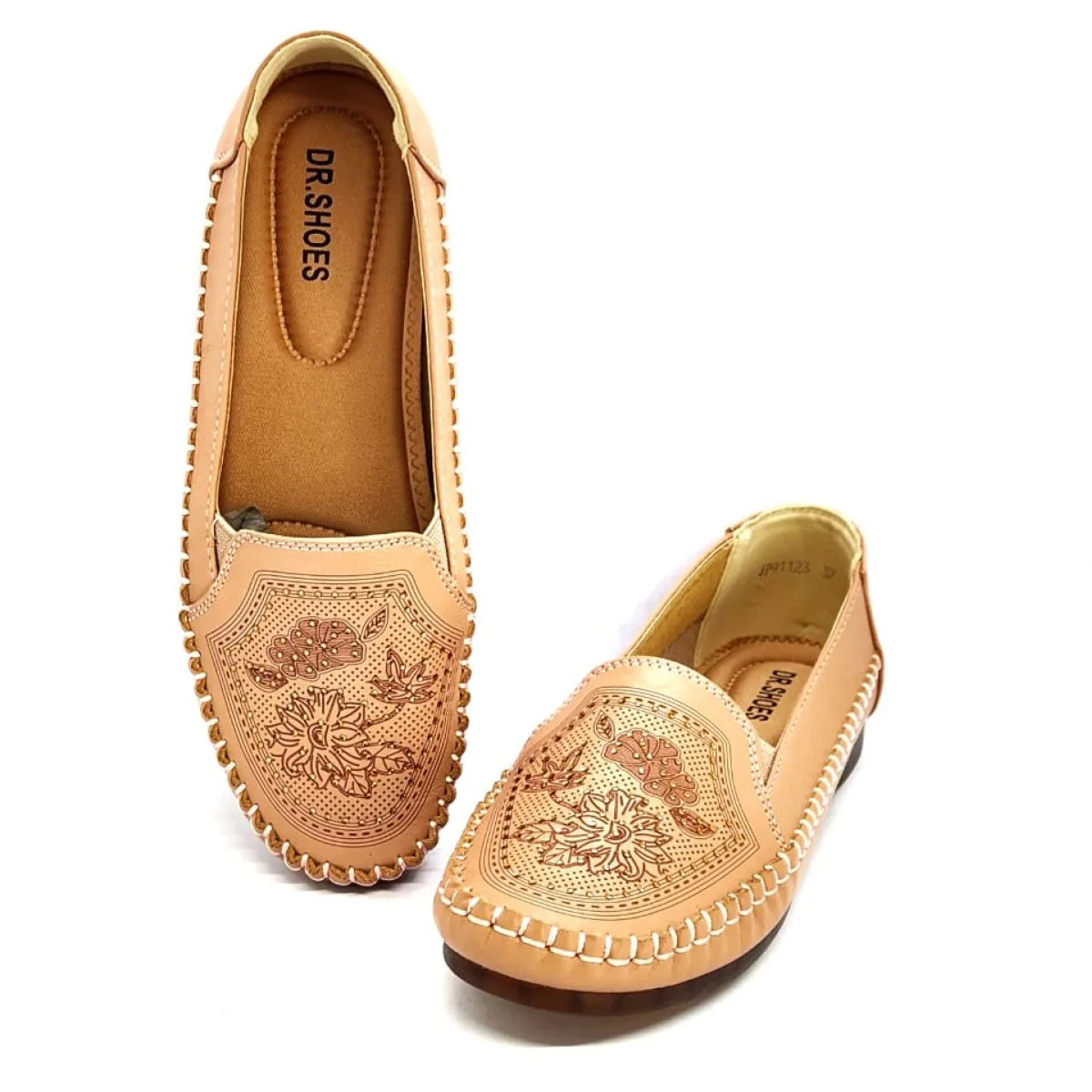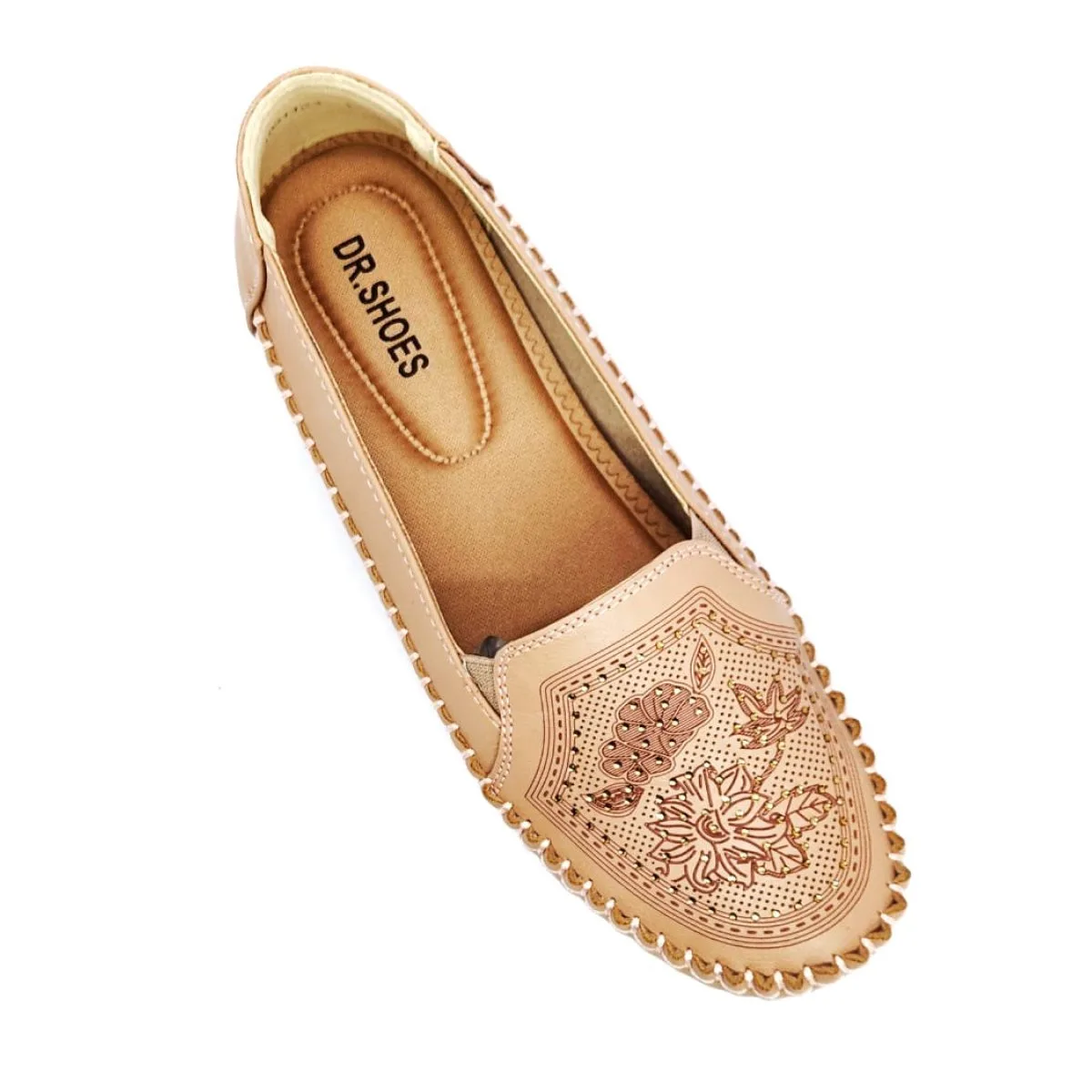 The Dr. Shoes Women’s Embellished Comfort Loafer offers a perfect blend of delicate style and ergonomic support. This stylish peach/nude half-loafer is made with a durable PU Leather upper that is beautifully detailed with a floral-style embroidery and subtle stonework. The core of its design is the specialized ‘Doctor’ insole, providing superior anatomical cushioning and support. Paired with a flexible Rubber Sole and soft moccasin stitching around the toe, this loafer ensures a comfortable, secure, and stylish fit for women who are on their feet all day.