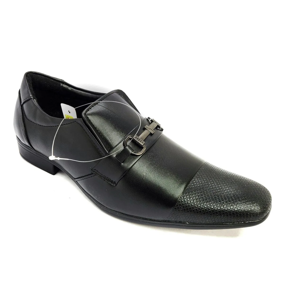 Design:Â Slip-on style formal shoe with decorative metal monk strap hardware.