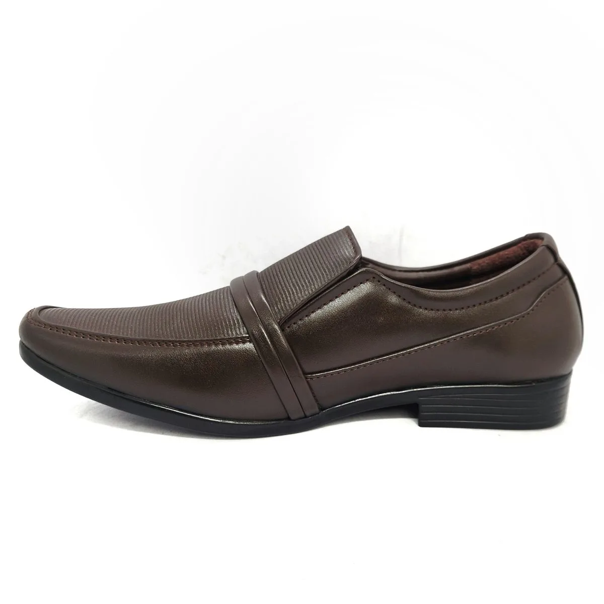 These dark brown formal shoes pair excellently with tan, grey, or navy suits and trousers. For a polished look, ensure your belt is also a matching shade of dark brown. The slip-on style offers a modern alternative to traditional lace-ups.