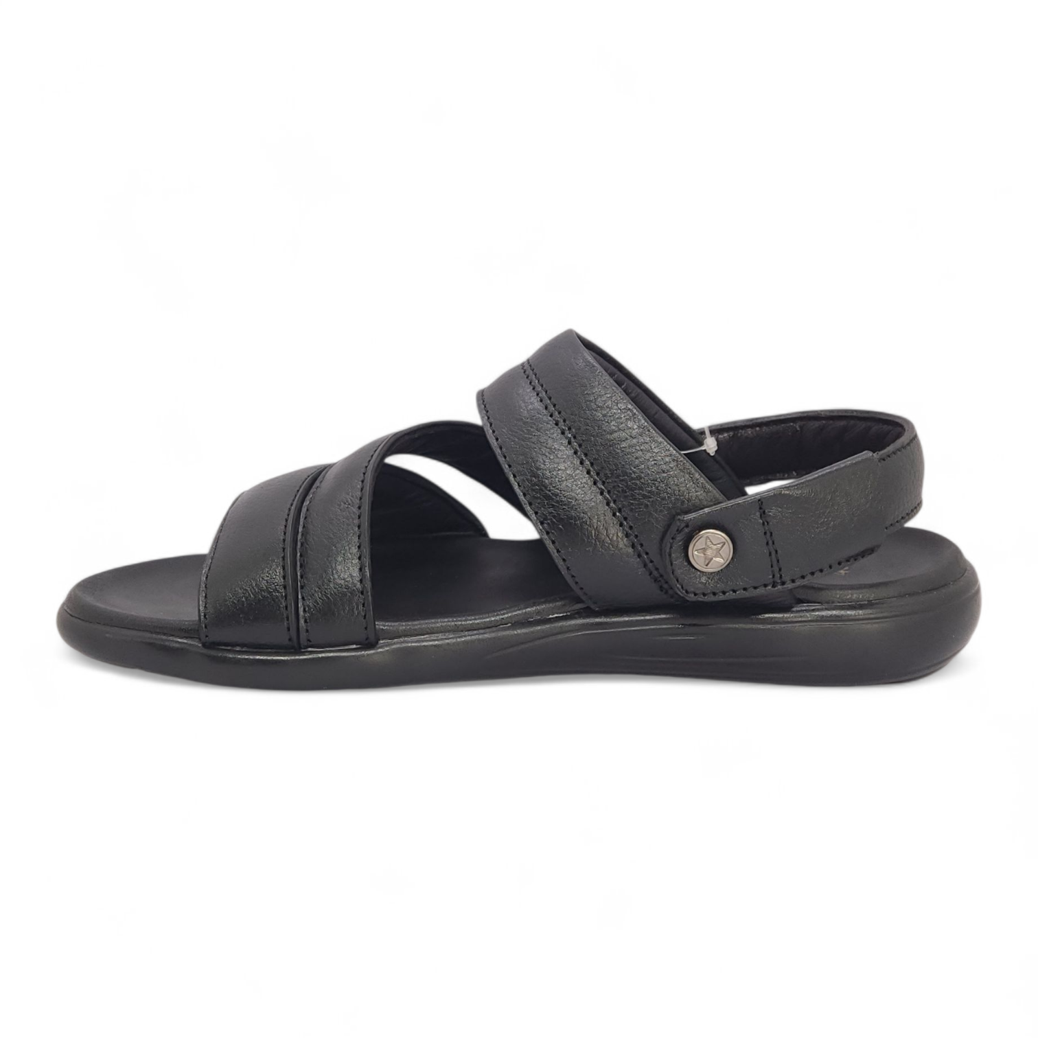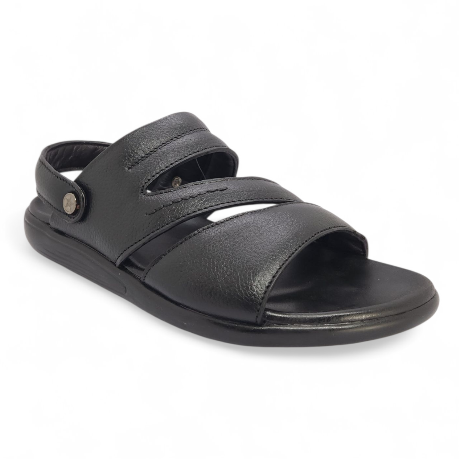 A durable and stylish men’s leather sandal in classic black. Built with a soft PEU leather insole and flexible PEU sole, offering all-day comfort for daily wear in Bangladesh.