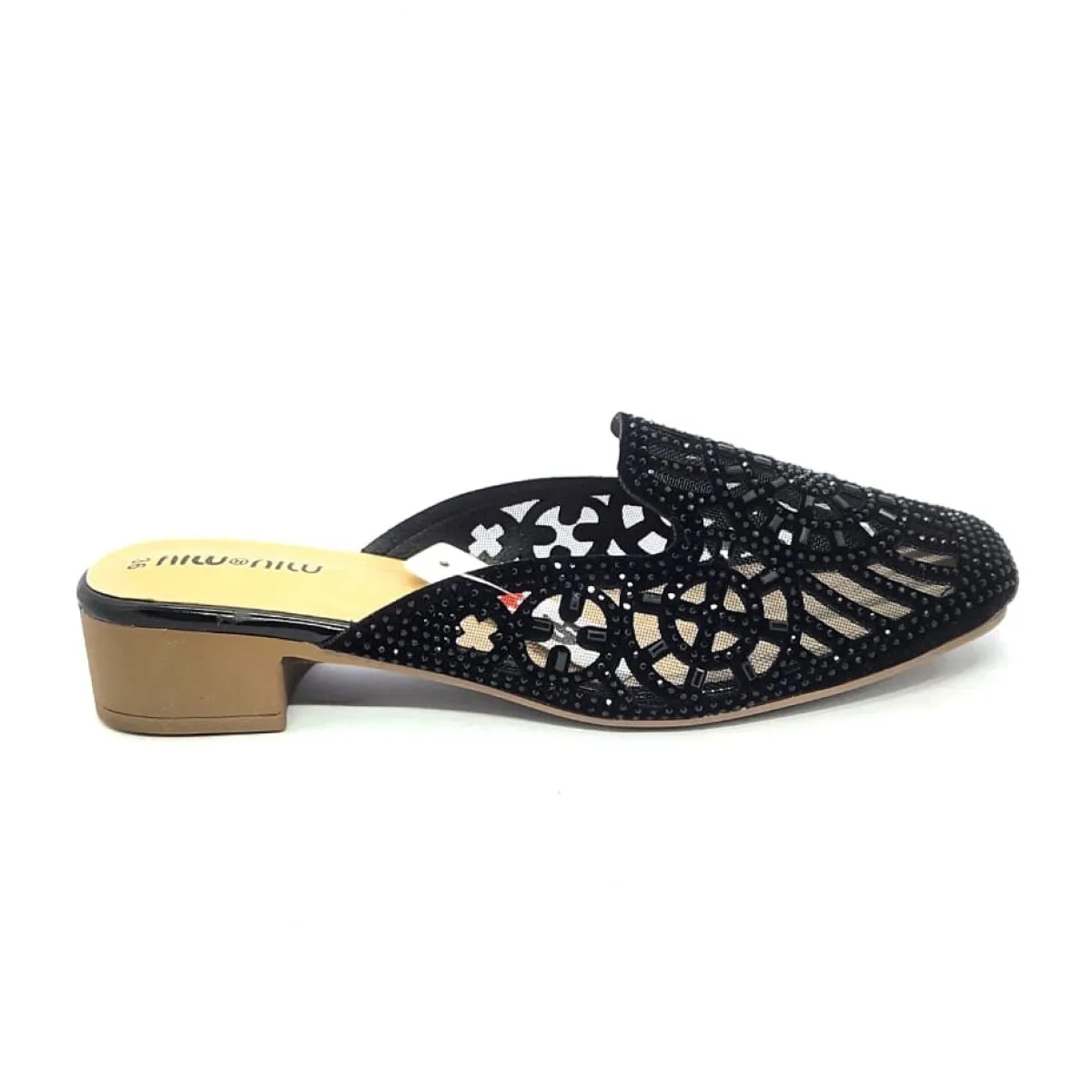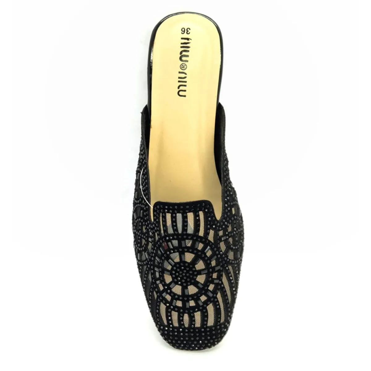 Upper Material:Â Synthetic Net with Black Stone/Rhinestone Embellishment